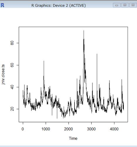結論から言うと、今回は「やりたいことが実現できなーい。どうすればいいのか分からん!」という話。 なので、読んでもいいことないです。いつも以上に単なる備忘録です。さてさて、今回はこんなデータ。 CSVを読み込んでtsに変換。 jniv<-read.csv("データ.…