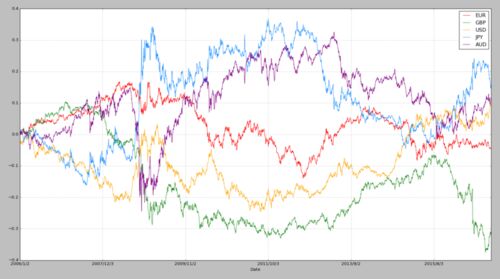 「EUR、GBP、USD、JPYだけから作成していたKUもどきのインディケータにAUDを追加した」ではAUDを追加したが、横軸がデータ数のままだった。 大した手間じゃないのに放置していたけど、直した。日足ベース、2006年1月1日〜2016年11月28日 日足ベース、2016年1…